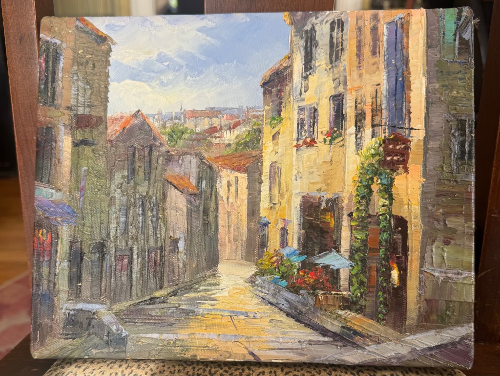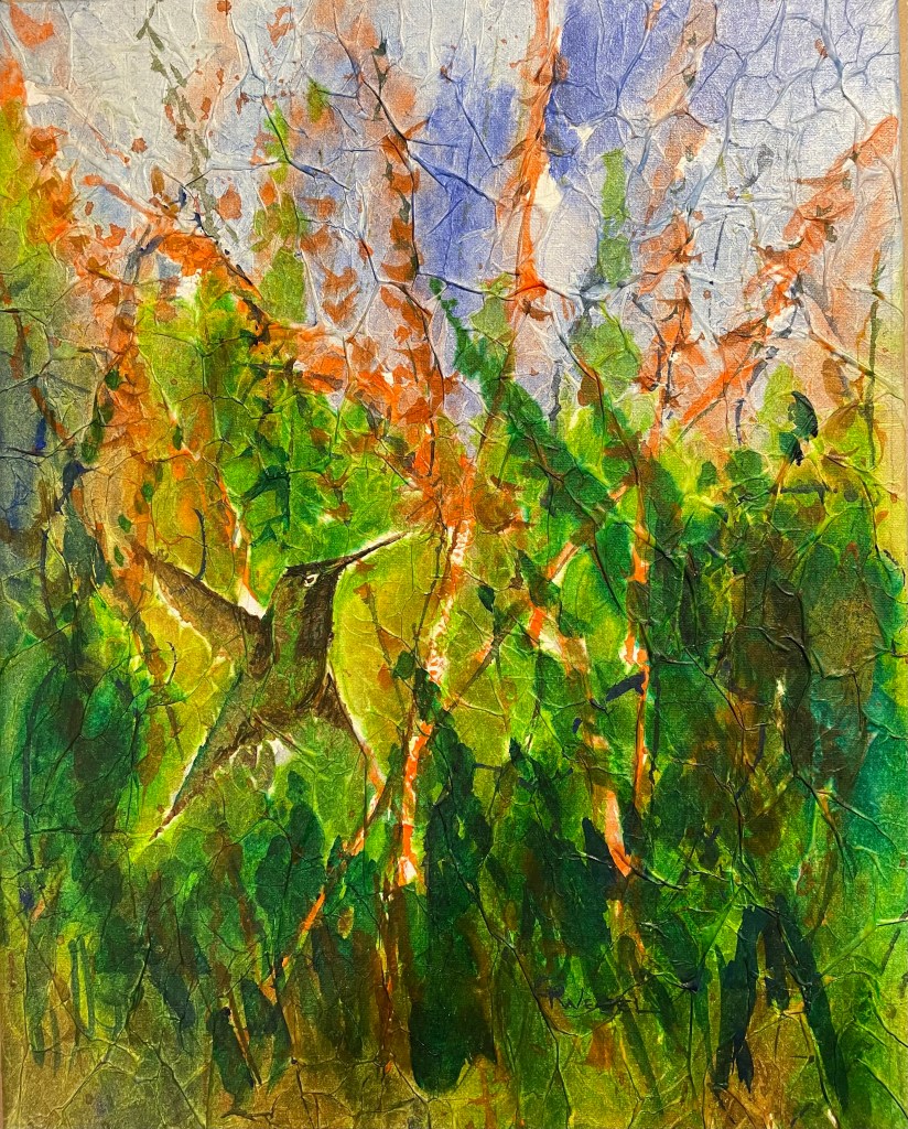 The colors of the world pull me, and I respond. Sometimes it’s the way light filters through the branches of a tree or the sharp contrast of a building against a baby-blue sky. My style, Glob Art, blends traditional painting with sculptural techniques, inviting both creative expression and technical precision. I enjoy the challenge of capturing the colors that captivate me while working the layers until they balance and counterbalance each other just right. The moment I know a piece is complete is when it offers a different experience up close than it does from far away.