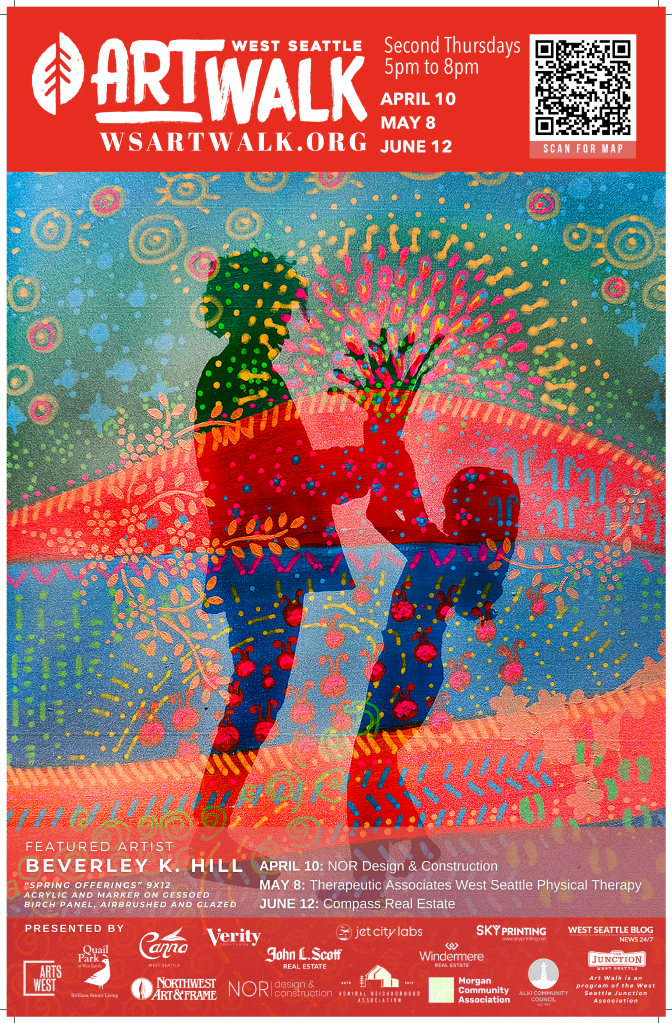 This post’s hero artwork is by Bev Hill. This work was made in honor of Gay Pride Month. Bev’s art is showing this month at Compass West Seattle Real Estate .