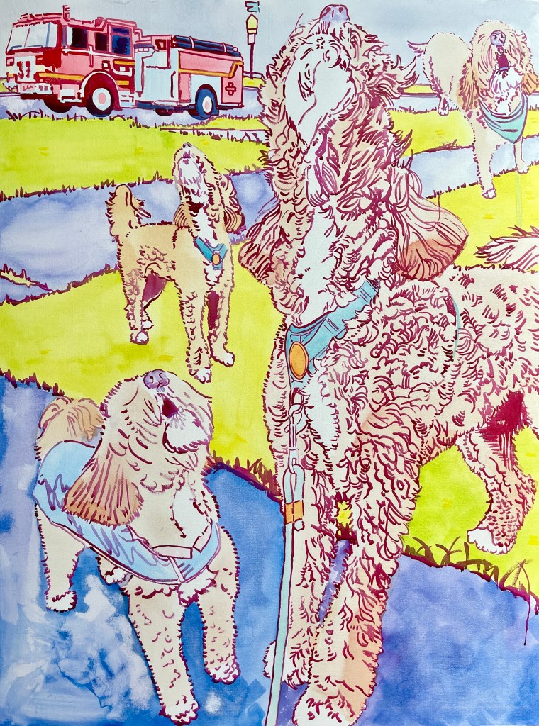 Rachel Bender is a mixed media visual artist living in West Seattle. She believes color is joy, and that life should embrace the bold and whimsical. Rachel is drawn to bright color palettes but often leans into the deeper blues and violets. The flow and movement and fleeting nature of water, wind, ribbons, bubbles, light, and sacred geometry can be seen throughout her work. Rachel enjoys experimenting with different styles; her landscapes are often inspired by Fauvism, although most of her abstract paintings are inspired by Paul Signac and other neo-impressionist artists, as well as Fahrelnissa Zeid and Morris Louis.