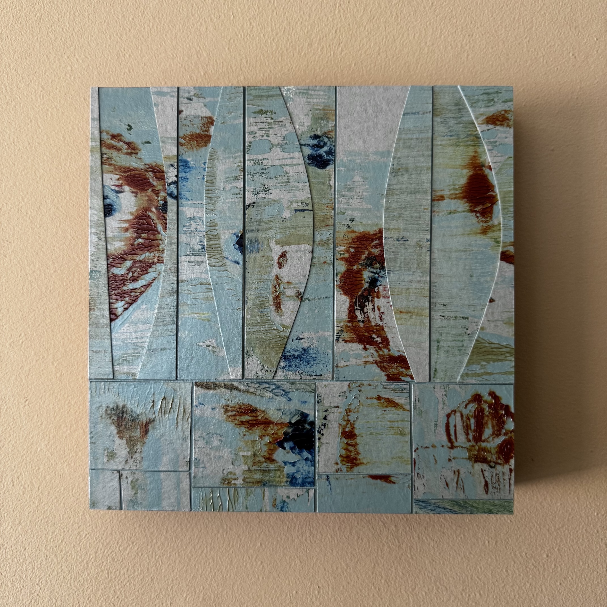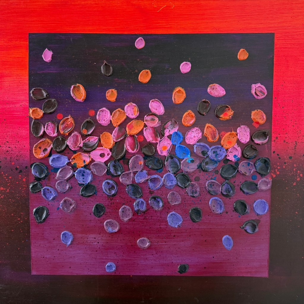 The colors of the world pull me, and I respond. Sometimes it’s the way light filters through the branches of a tree or the sharp contrast of a building against a baby-blue sky. My style, Glob Art, blends traditional painting with sculptural techniques, inviting both creative expression and technical precision. I enjoy the challenge of capturing the colors that captivate me while working the layers until they balance and counterbalance each other just right. The moment I know a piece is complete is when it offers a different experience up close than it does from far away.