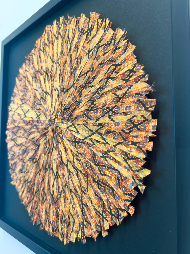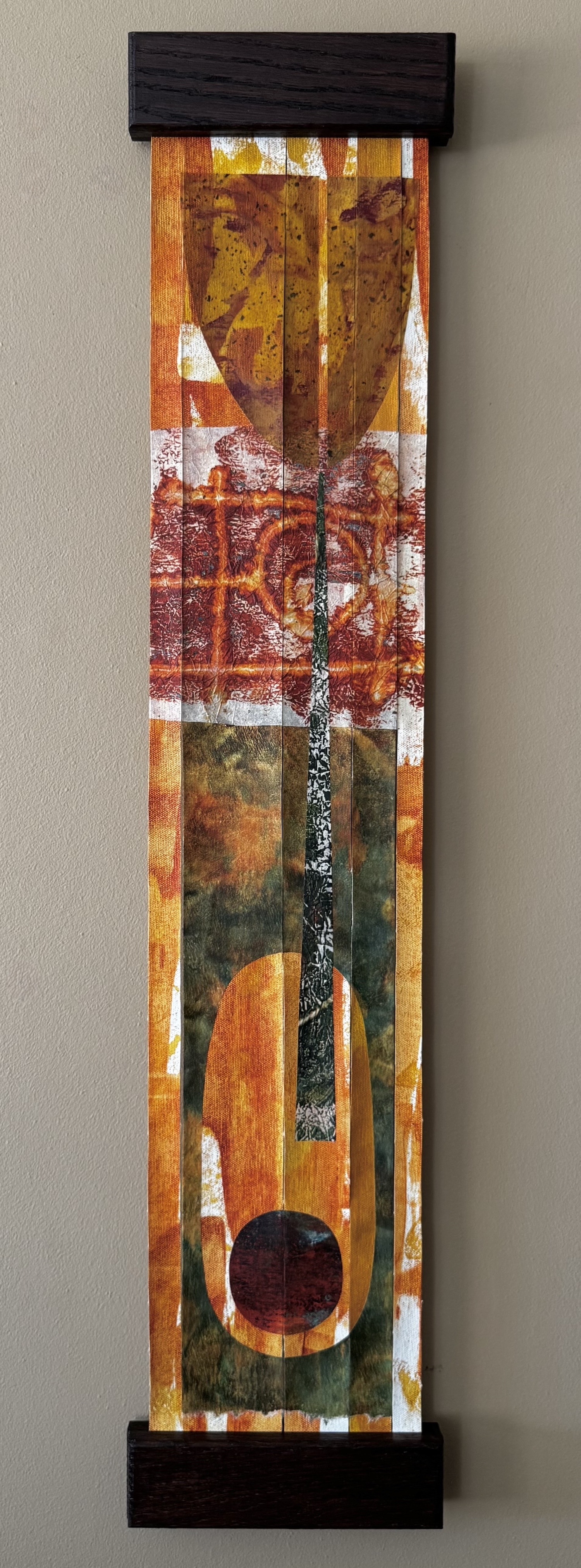 Rebecca Woodhouse creates original linocut paintings, necktie collages, and hybrids of the 2. She spent November in France, for an art residency at Chateau Orquevaux, and is planning a number of gallery shows this year. Come see her newly framed “Starburst” as well as see her work that will be displayed at a political art show this summer at Gallery 110.