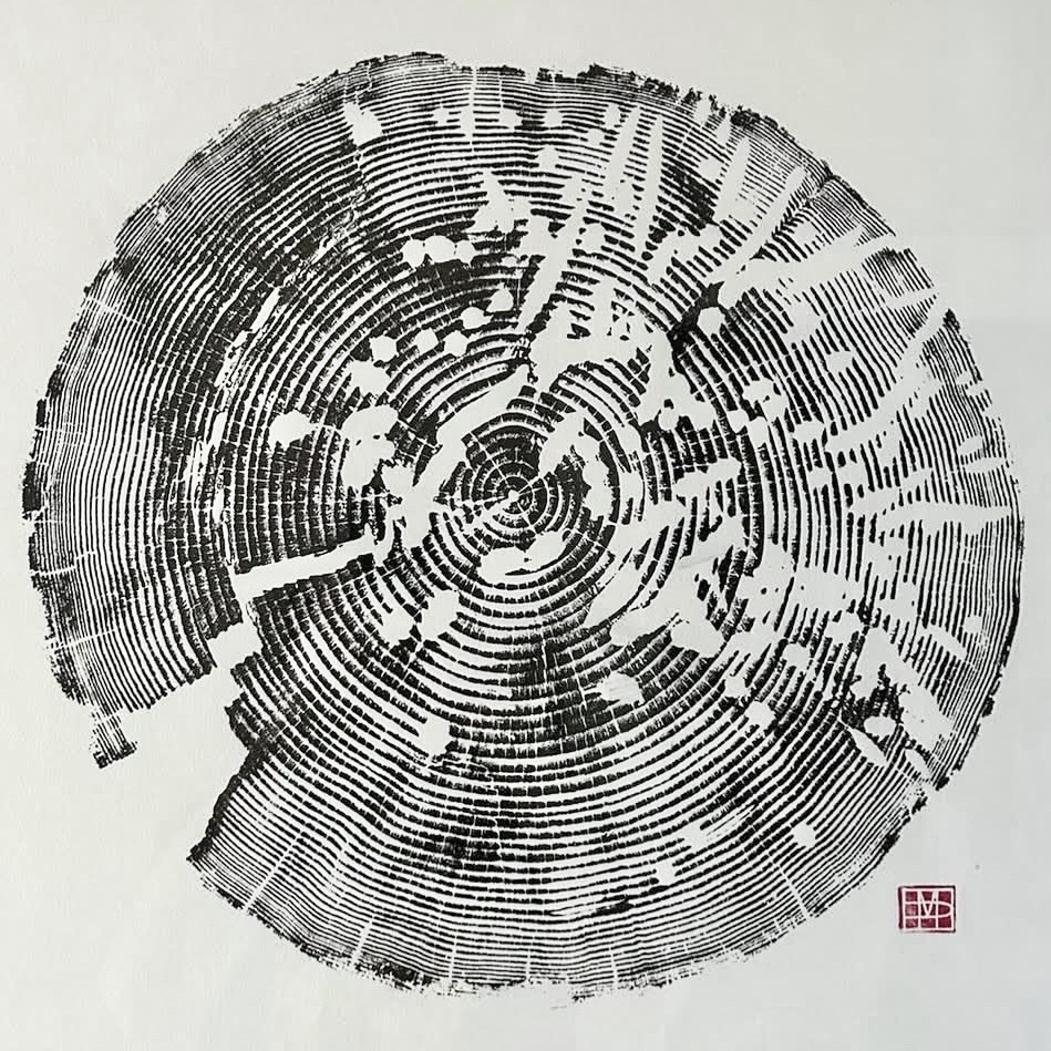 David comes from a family of artists born and raised in the Puget Sound area. This installation is a result of his love for the Pacific Northwest, and his love of art. Adoring the aesthetic of woodcut prints, David captures the tree’s image, essentially a snapshot of its entire life, with all of its twists, turns, imperfections, and beauty, preserved. Nature is the artist. Every print is a unique, hand burnished original. And all of the tree stumps used to create the printed pieces were found, donated, or borrowed from the PNW.