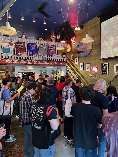 At Emerald Angler Waters, artist Cody Esp showed her beautiful work. We learned that she is also a muralist, and very kind too. The crowd was very interested in what she was showing.Easy Street had a band that drove a big crowd and Jet City Labs was fun as always!