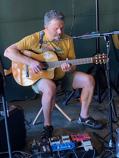 Discovery shop artist Dinah was whimsical and diverse in her genres and textures. Loved the sparkle collar! Soprano’s Antico Pizza & Pasta Restaurant patrons enjoyed the music of My Real Job featuring Susan Denini and Jack Bradbury. With their front window open, not only the diners inside at Due’ Cucina but also passers by got to enjoy entertainment by Michael J. Good.