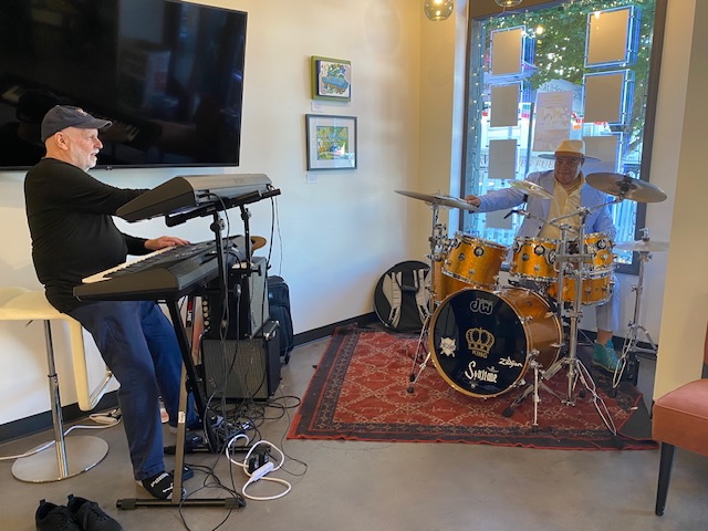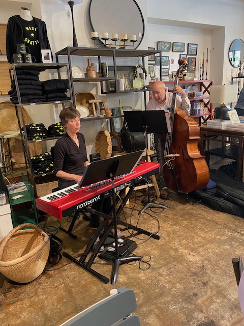 The Junction was buzzing with excitement and energy as pockets of people enjoyed the Art of Music and an amazing array of talented artists with crews setting up diligently for Summerfest. Carolyn J. Autenrieth at Therapeutic Associates shared her love of trees and what they teach her about life and connection. At Itto’s Vino, musician Maggie Laird serenaded customers on the deck and inside. At John L. Scott Real Estate, St. Bees Duo provided captivating music to accompany art by Tom Costantini.