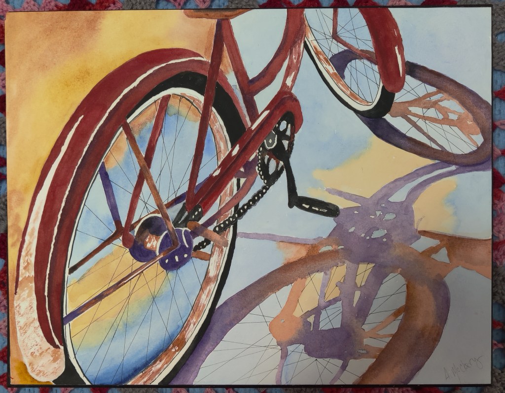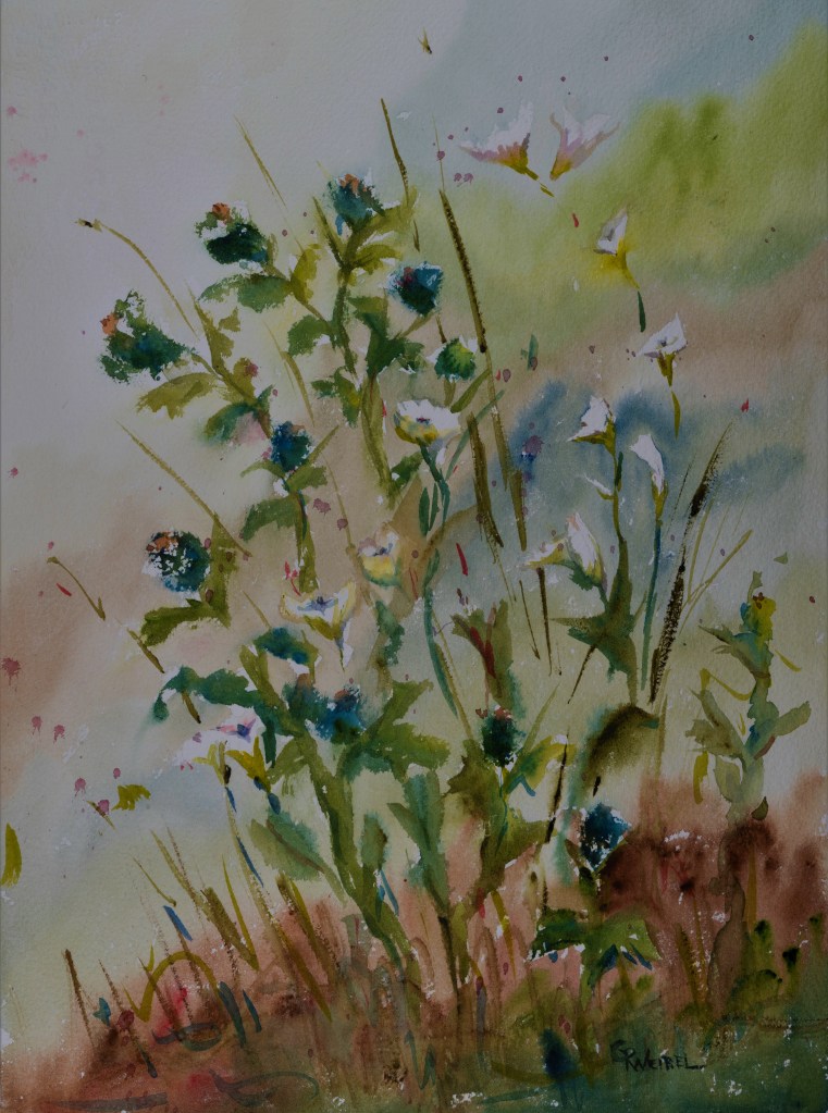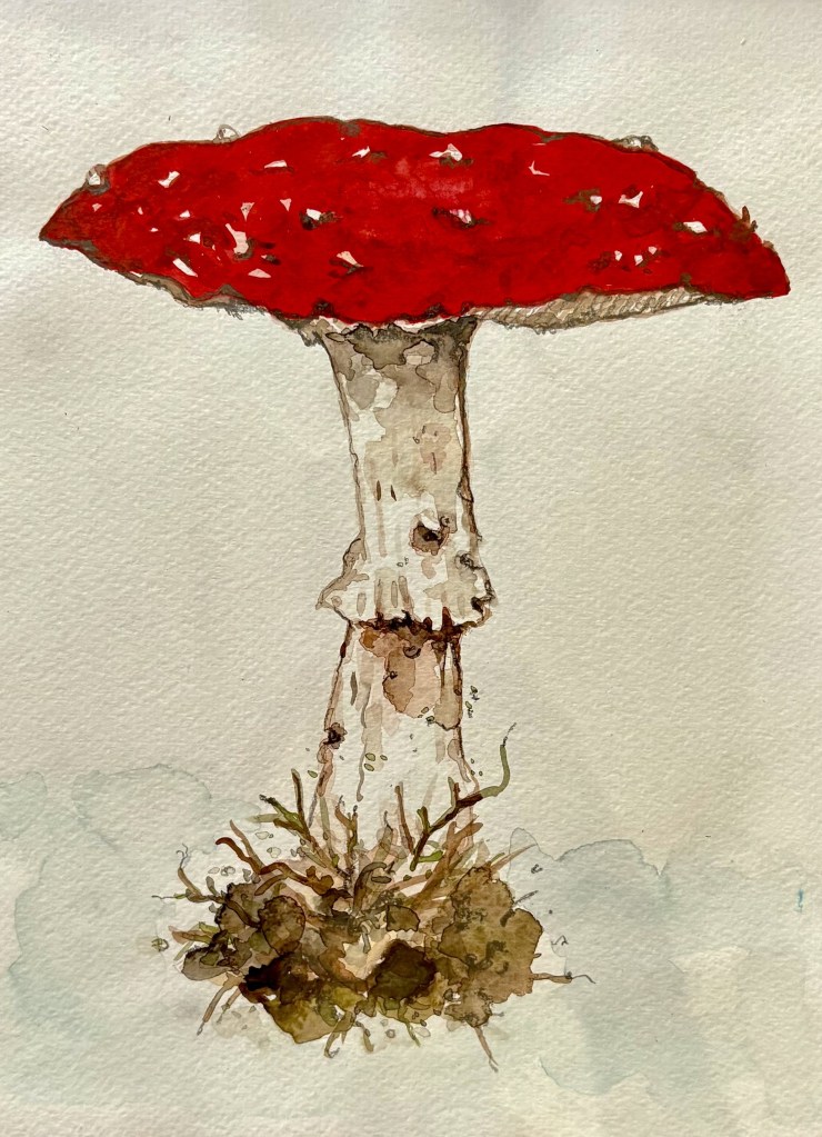 Patricia Exworthy is an artist who has spent decades learning, teaching and celebrating art. Watercolor, pen/ink and colored pencil drawings constitute the foundation of her portfolio, though she also enjoys crafting and creating mixed media pieces. During the pandemic, she brought special attention to her work and focused on the healing aspects of art. “I can only produce artwork when I feel joyful,” Patricia says. That joy is apparent in her colorful drawings of mushrooms, the calm landscapes in her watercolors and line art portraits that echo wire art creations.