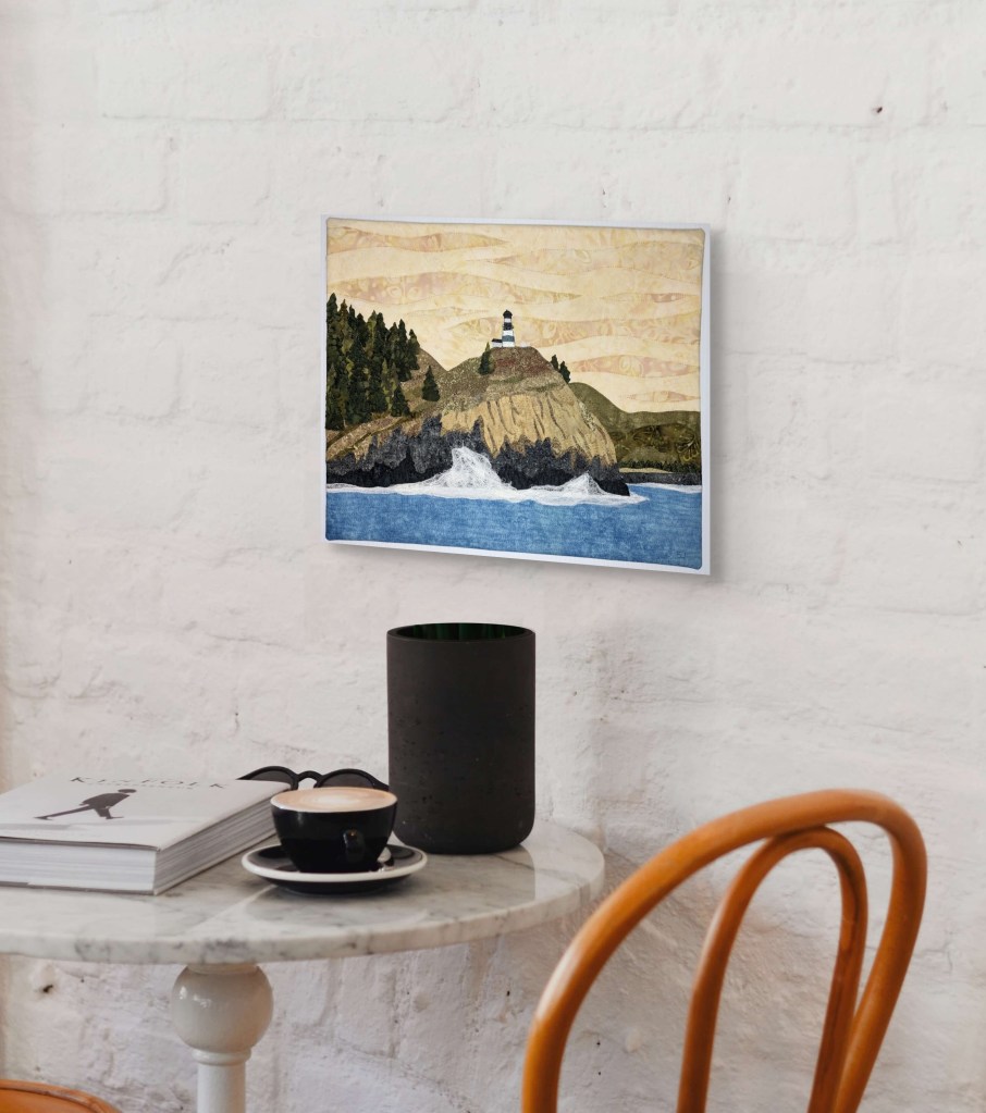 Born and raised near Buffalo, NY I have lived in West Seattle since 1987. The Pacific Northwest offers endless inspiration with its majestic mountains, towering evergreens, crashing waves, roaring rivers and beautiful wildlife. I love the challenge of turning a photo into a quilt using a variety of techniques including collage, applique, thread painting and free motion quilting. While some art quilters embellish their work with paint, I prefer to “paint” my quilts, using only fabric and thread, and the occasional addition of lace, cheesecloth or even cotton balls.