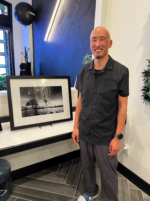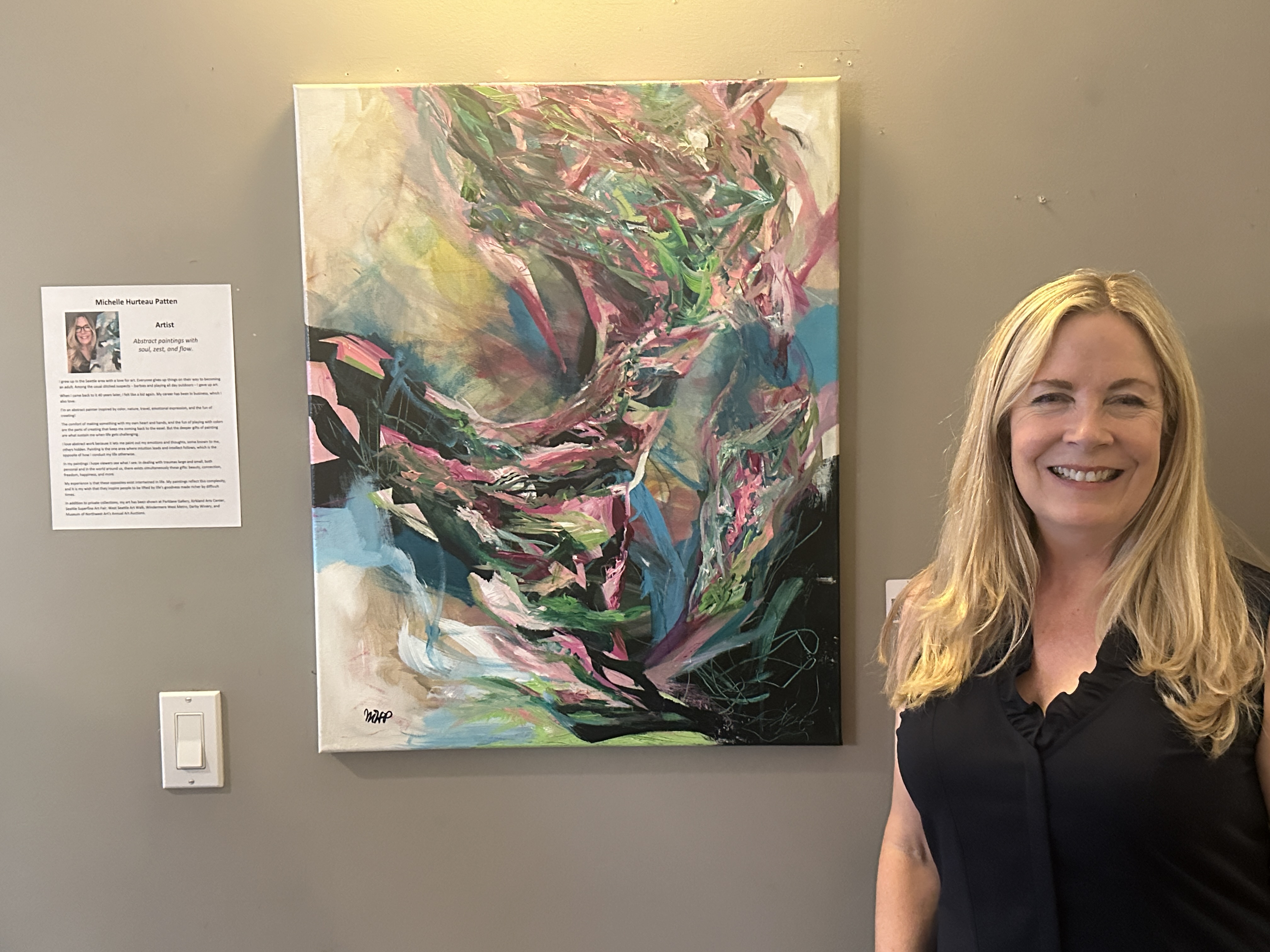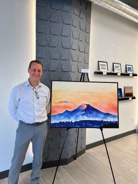 The lovely Michelle Hurteau was showing her abstracts at Windermere. The photo included below displays a work that was inspired by things she sees in her backyard, such as trees, flowers, hummingbirds. Talarico’s artist this month is KAM. Ann McClary was showing watercolors at the Discovery Shop. She paints whatever inspires her and donates any sale to The Discovery Shop: how cool is that. Eugene Lee is a photographer, and all his photos in the show are from West Seattle. He has an amazing eye and really enjoys doing sunsets in black and white.