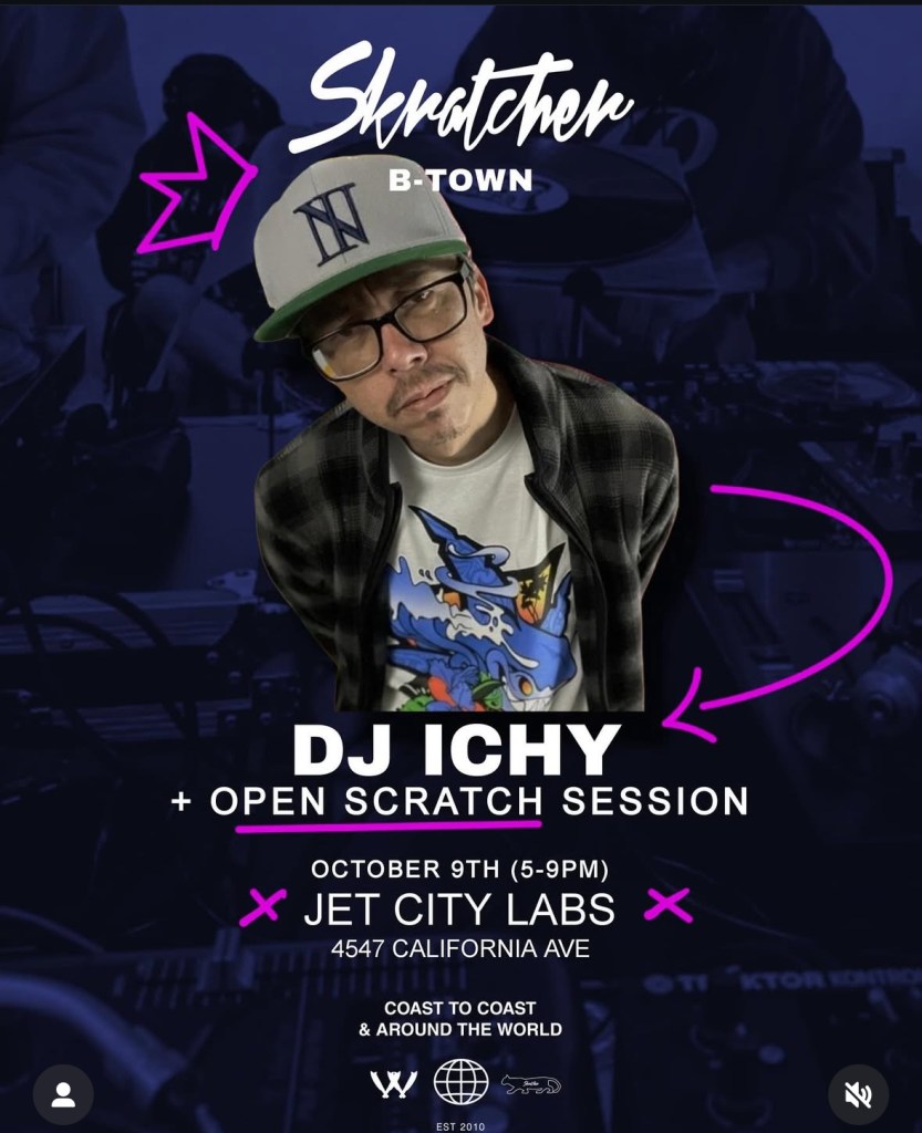 Open Skratch session with DJ Ichy, sip something nice, and catch a vibe. Free to attend. All are welcome.