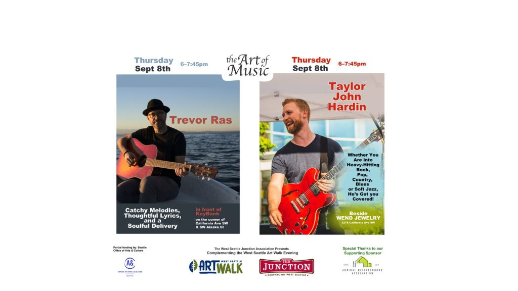 Come enjoy live music at the Art Walk! The Art of Music is in Admiral and Alaska Junctions.